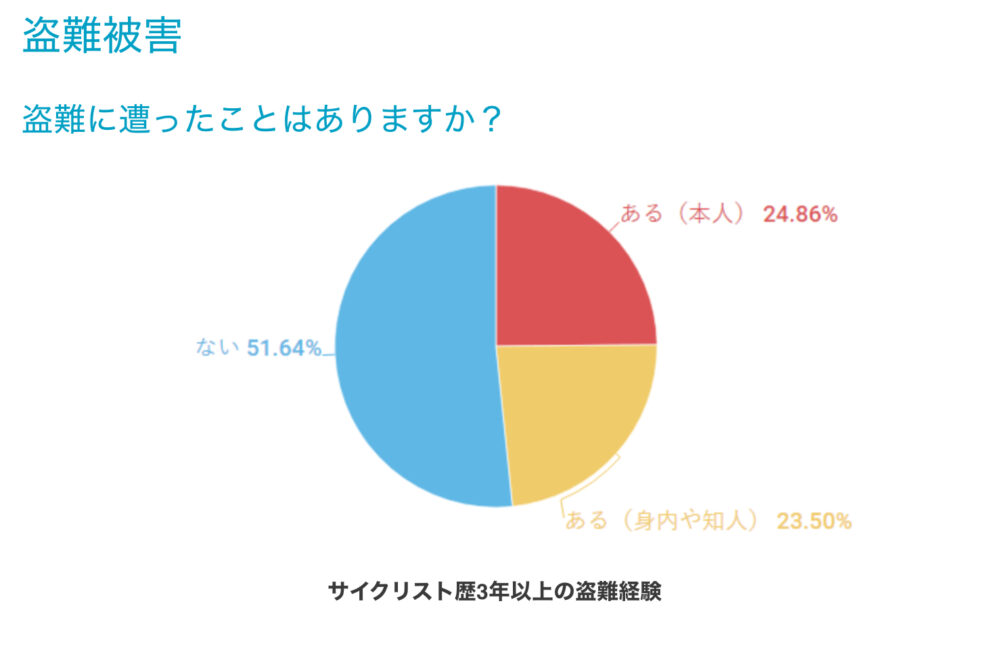 このアンケートは現在もスポーツサイクルに乗っている人が対象なので、盗難をきっかけに辞めてしまった人は含まれません。