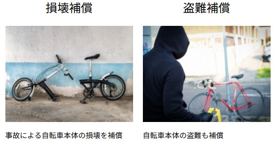 一般的な「自転車保険(賠償責任や傷害の補償が主)」とは異なり、自転車本体(車両)にかける保険となります。
