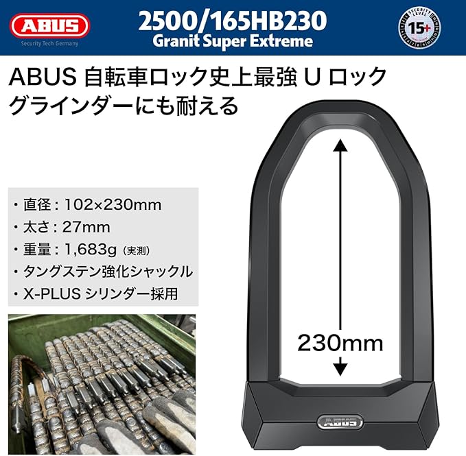 ワイヤーロックより切断耐性が高く、特に太いチェーンや焼入れ加工されたチェーンは高い防御力を発揮します。
